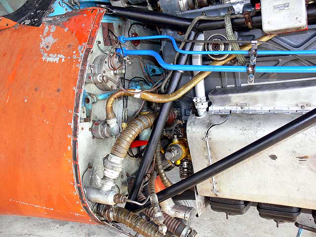 között olaj és benzincsövek, motorvezérlő mechanizmusok